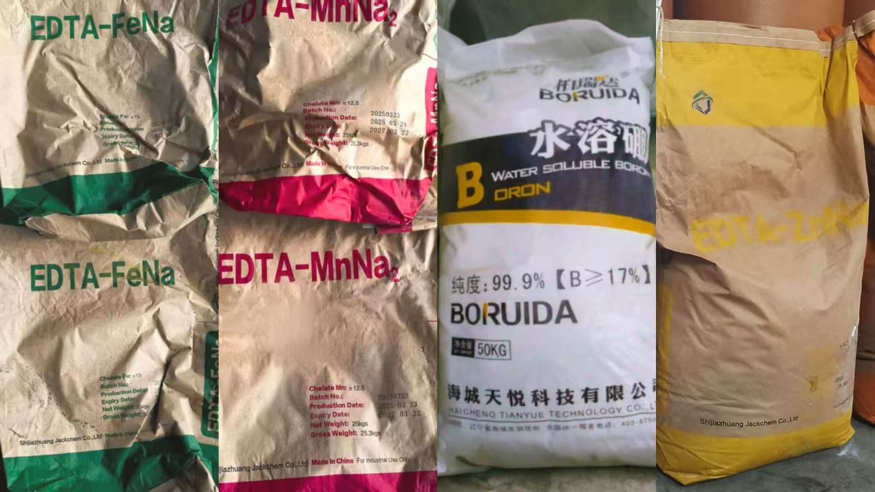 传统无机盐类微量元素易与土壤中的磷酸根硫酸根、有机质等发生反应,形成难溶物吸收利用率低。而本品内含的多种微量元素具有含量高、分子量小、结构稳定的特点,在土壤中活性高,不与磷酸根、硫酸根、有机质等发生反应,水溶性好,吸收利用率远远高于无机盐类。同时微量元素能够抑制元素相互间的拮抗反应,不会降低大量元素的肥效使大量元素的活性也高于传统无机盐类,肥效更加显著。
